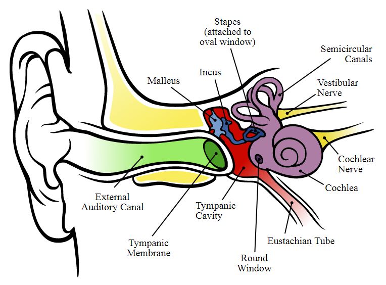 Tအျပင္နားတြင္ နားအဝႏွင့္နားစည္တို႔ပါရွိသည္။ အသံသည္ နားအဝကိုျဖတ္ျပီး နားစည္ကို ထိ၍ တုန္ခါေစသည္။